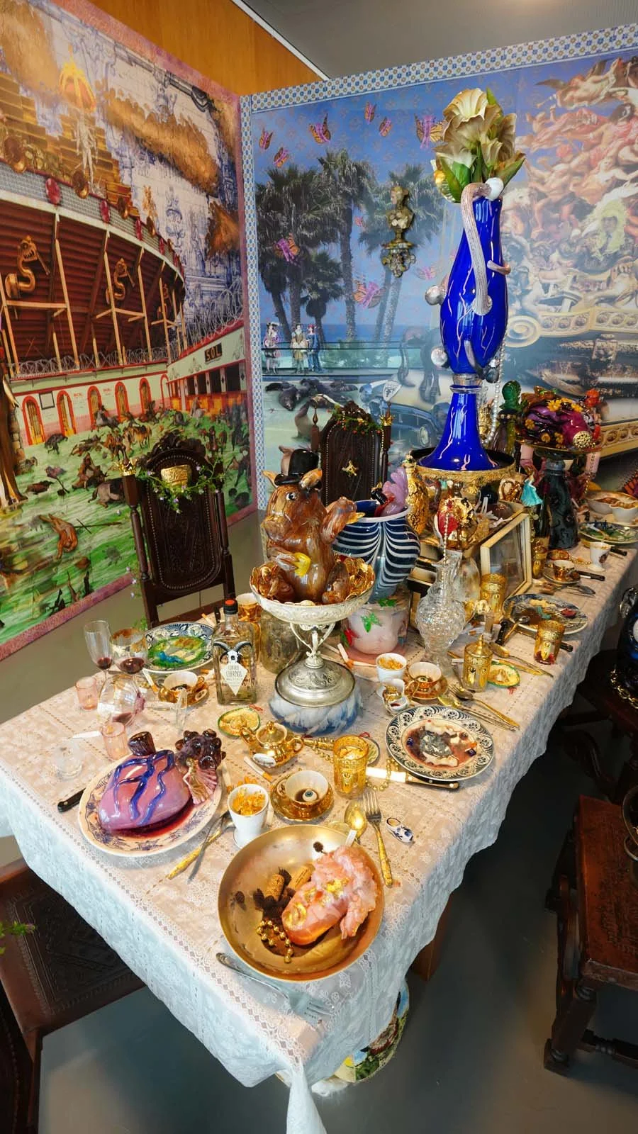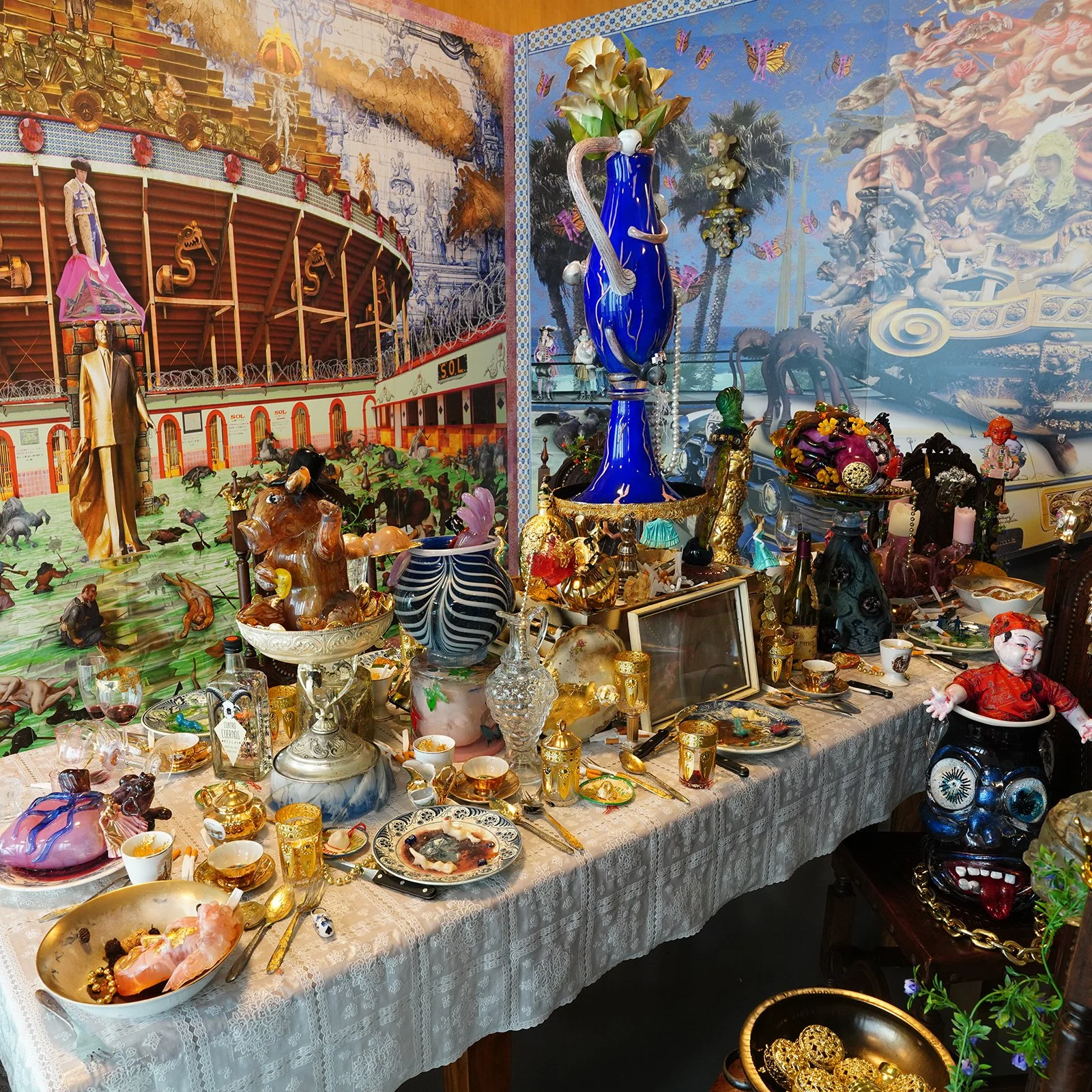 Combining blown glass pieces with mixed media and artistic installations, their works address topics as vast and current as the identity of peoples, globalization and capitalism. The De La Torres’ work abounds in references to Mexican stories and traditions, religious and sexual allusions.